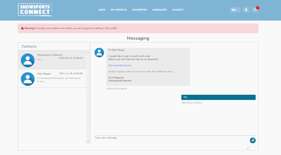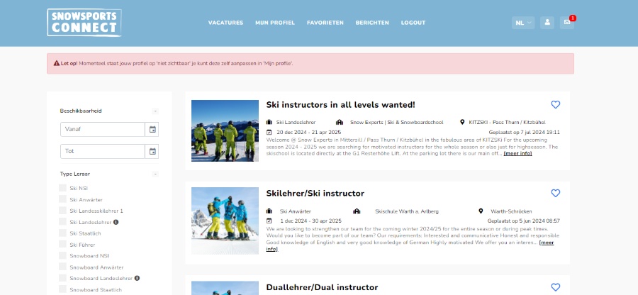 Find and be found SnowsportsConnect is a platform that connects ski and snowboard instructors with ski schools around the world. After creating a profile you can view all available vacancies posted by ski schools. SnowsportsConnect makes it easier for snowsports instructors to connect with ski schools and find their dream job in the snow!